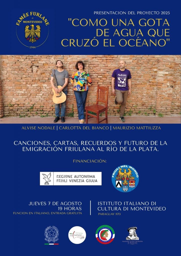 Para concluir las celebraciones de su 80º aniversario, la Famèe Furlane de Montevideo presenta el estreno mundial de uno de sus proyectos: el espectáculo titulado “Come una gocce d’acqua che attraversò l’oceano”.