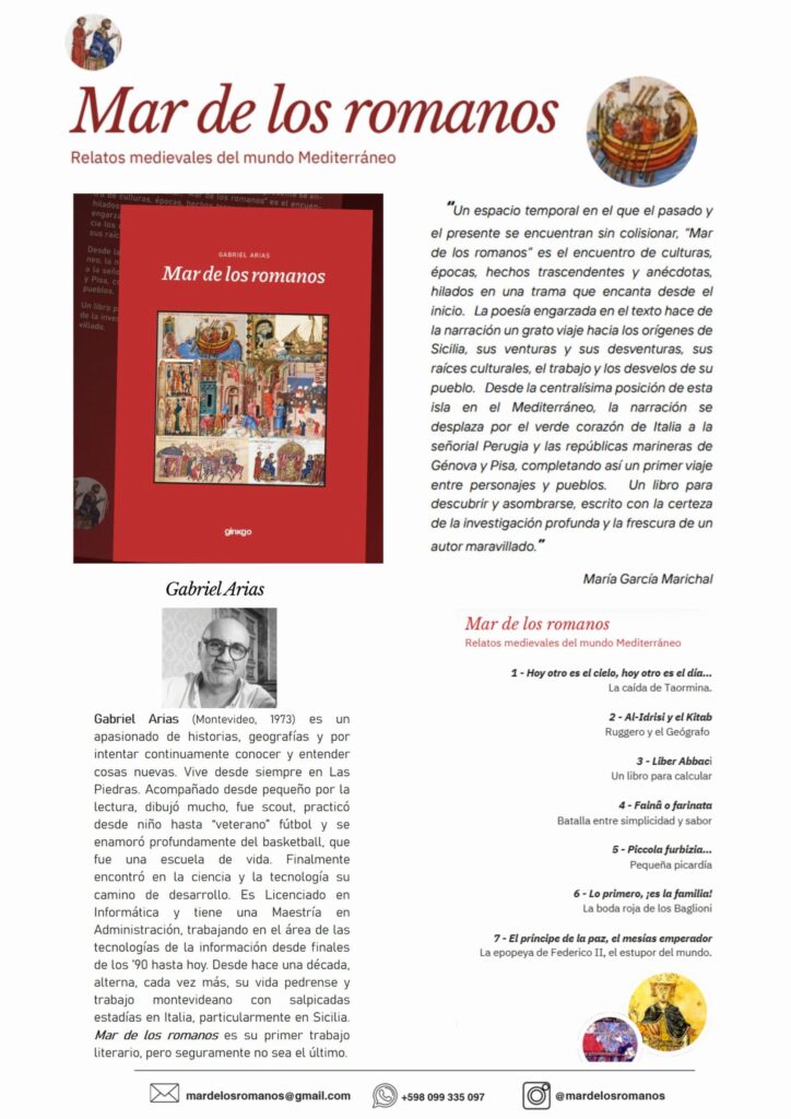 En el marco de la Feria Internacional del libro se presentará el libro “Mar de los Romanos” de Gabriel Arias. Se trata de relatos medievales del mundo mediterráneo.
